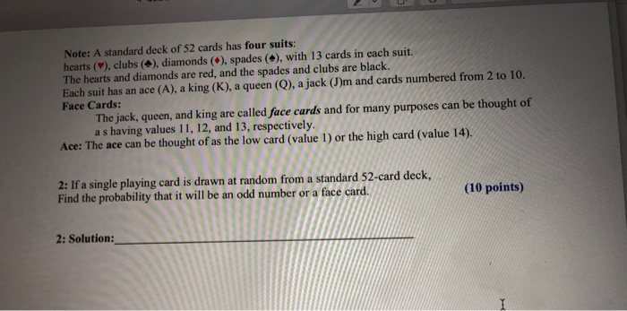 How Many Spades Are In A 52 Card Deck : Solved: A Standard Deck Of Playing Cards Consists Of 52 Ca... | Chegg.com. No, an ace is not a face card. With playing with six or more players, a second deck is often used. How many cards are in a deck? Clubs, spades, diamonds, and hearts. Usually played by two partnerships, but very appropriate for 2 players as well.